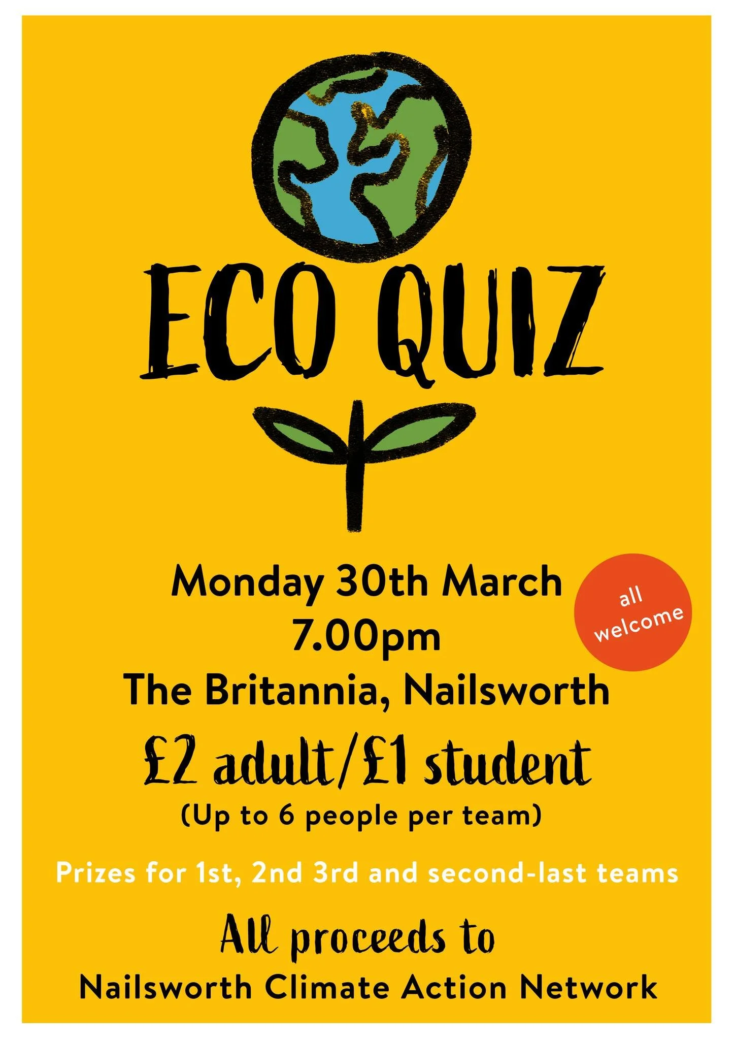 All are welcome to come to the Eco Quiz being run by NailsworthCAN and hosted by The Britannia, Nailsworth, on Monday 30th March at 7pm. Entry fee of £2 for adults and £1 per student, and up to 6 people per team.