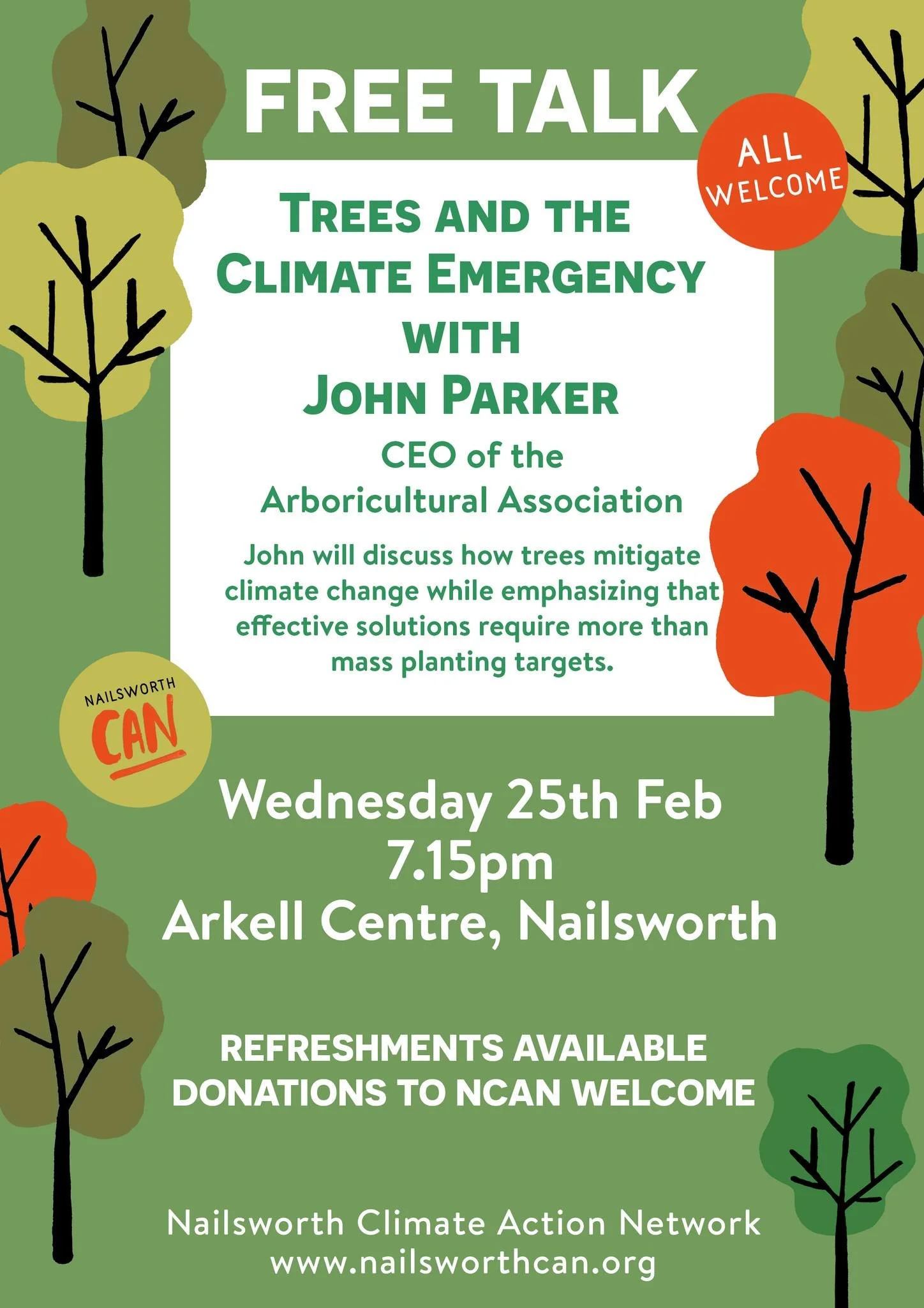 We are very pleased to have John Parker, CEO of the Arboricultural Association, coming to Nailsworth on 25th February, 7.15pm, for a talk on Trees and the Climate Emergency. Join us at the Arkell Centre to find out more.